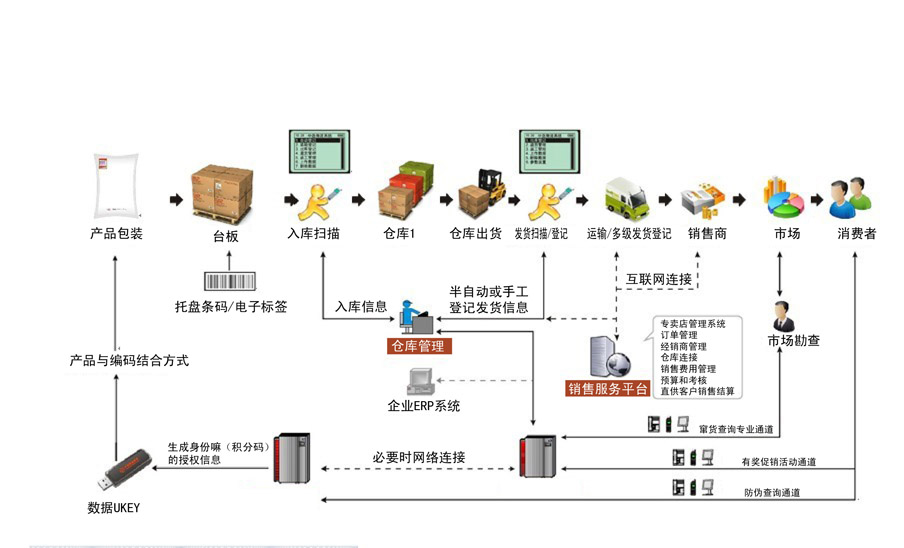 倉儲環(huán)節(jié):從生產(chǎn)(貼)到入庫(可選擇兩套系統(tǒng),掃描入倉和直接不掃描入倉。)直至市場查詢(消費(fèi)者、稽查人員等)等流通環(huán)節(jié)查詢等功能上,善進(jìn)產(chǎn)品防偽防竄解決方案都具有無法比擬的完整性和靈活性。除此之外,產(chǎn)品防偽防竄解決方案所具備的保證安全性的加密功能,功能的可擴(kuò)性以及高效的運(yùn)作成本,都顯示出無比的優(yōu)越性。善進(jìn)“數(shù)字化流向監(jiān)管系統(tǒng)”集成解決方案強(qiáng)大的防偽防竄全方位跟蹤追溯效果,穩(wěn)定的產(chǎn)品性能,專業(yè)的售后服務(wù),正在幫助更多的企業(yè)實(shí)現(xiàn)完善的產(chǎn)品跟蹤防偽、防竄貨管理。